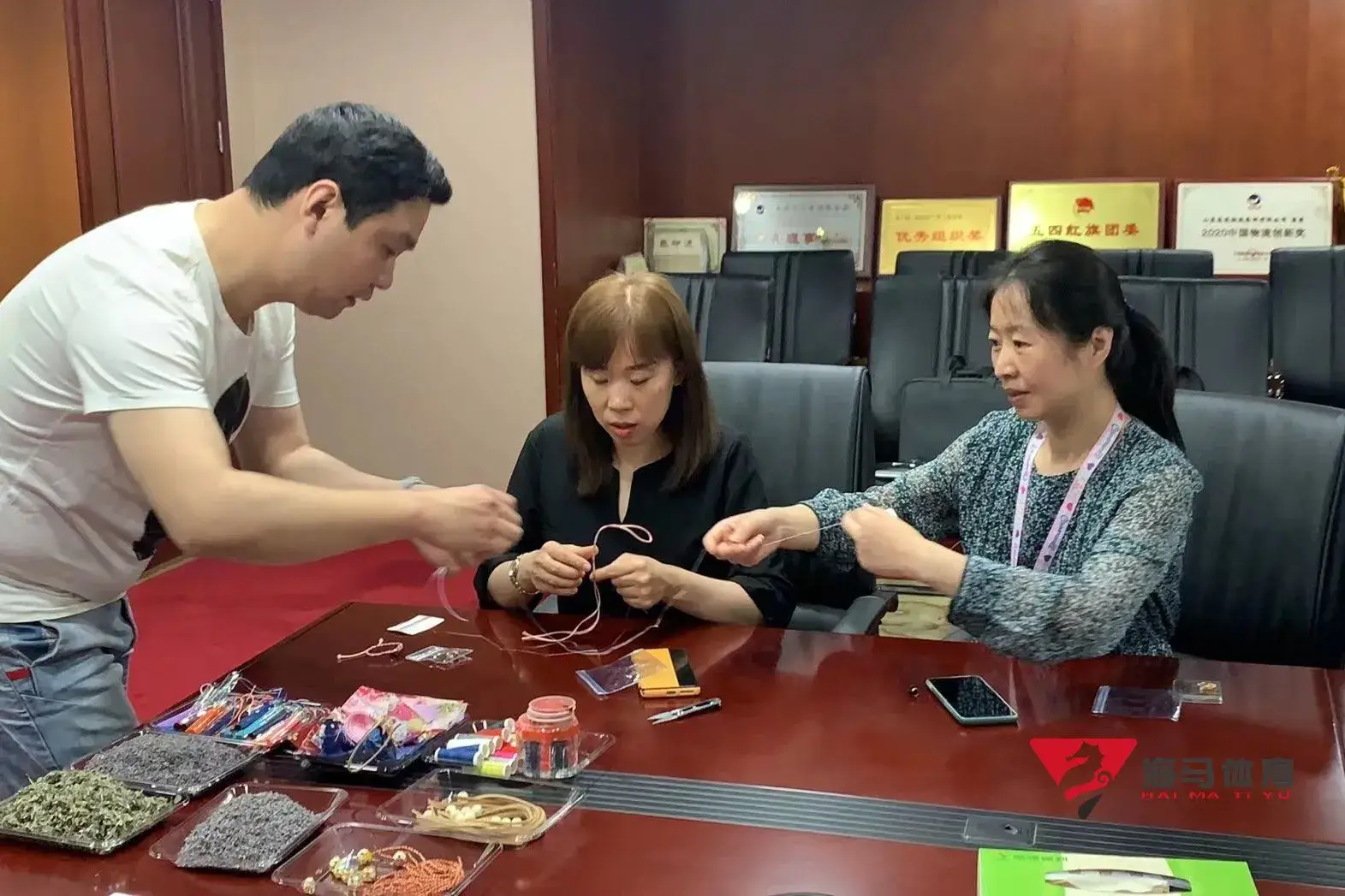 制作前,人人体育的手工老师首先介绍了端午的习俗以及端午节制作香囊与五彩绳的来历,让大家在活动前了解端午的民俗文化,手工老师将精心准备的有着美好寓意的五色彩绳、色彩绚丽的香包袋以及清香的艾草薰衣草,送到职员手中,携手制作香包和五彩绳。